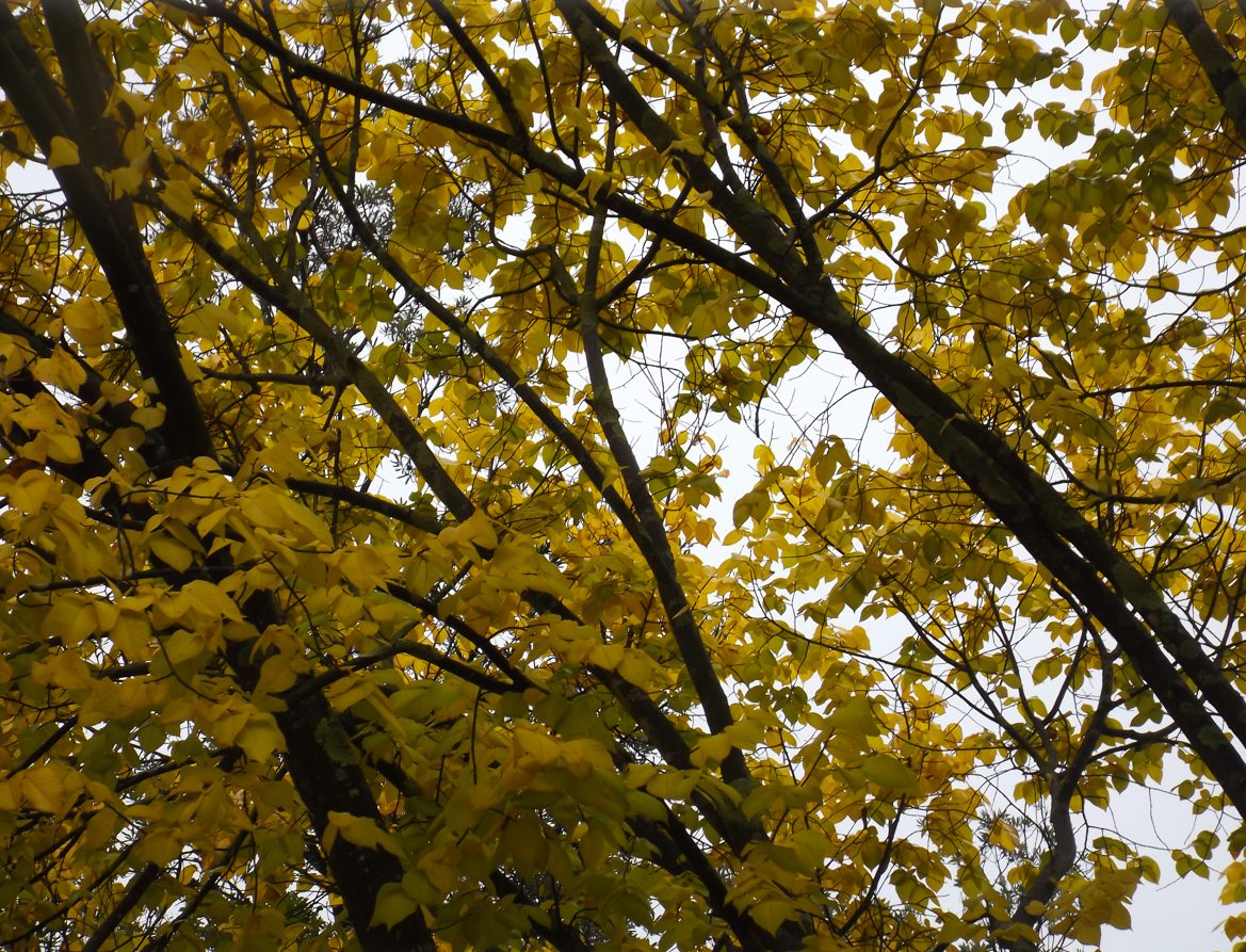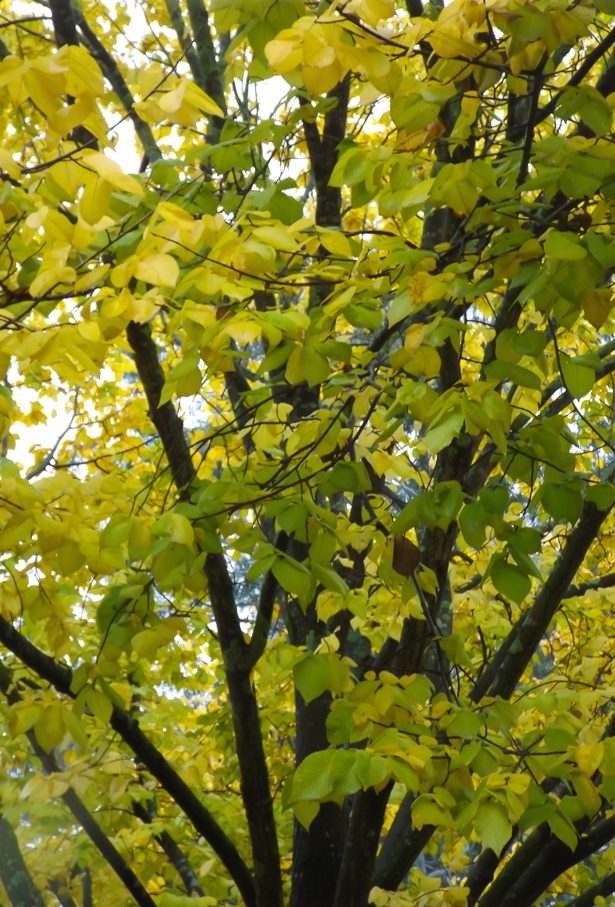 It has taken ages for the tree to get ready for autumn and it is only now with winter here that the leaves have turned and are getting ready to drop.