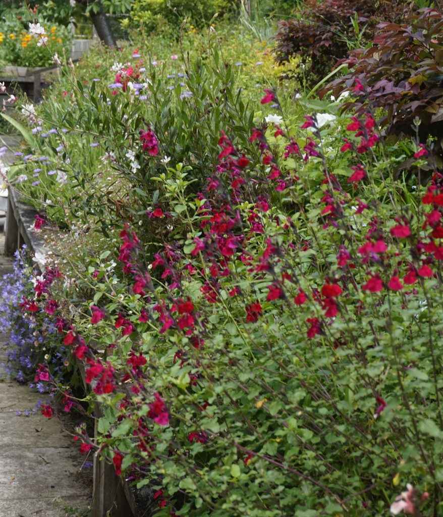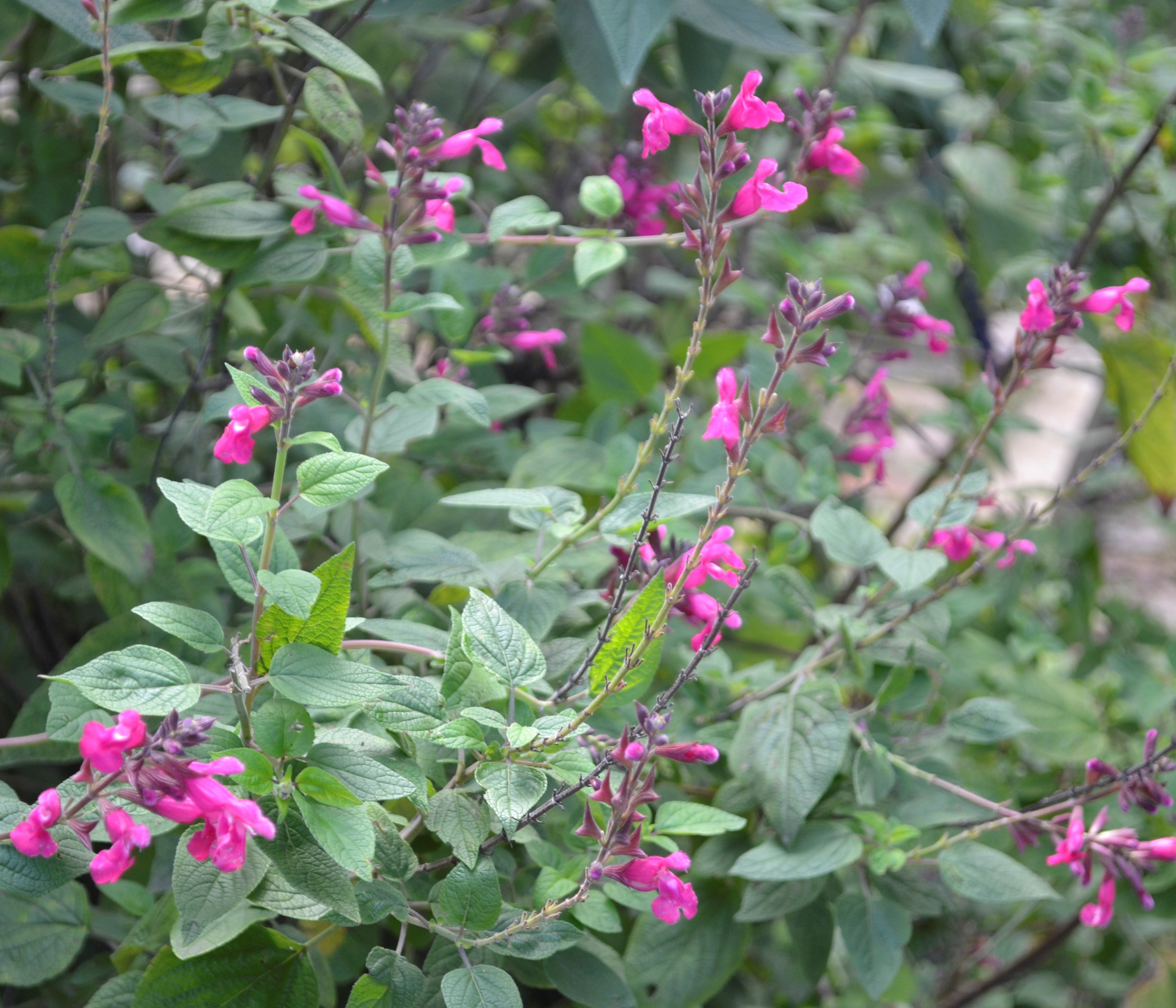 Salvias also compliment plants like Loropetalum, Forest Pansy, Smoke Bush and Ablutions where we have a hedge of them.