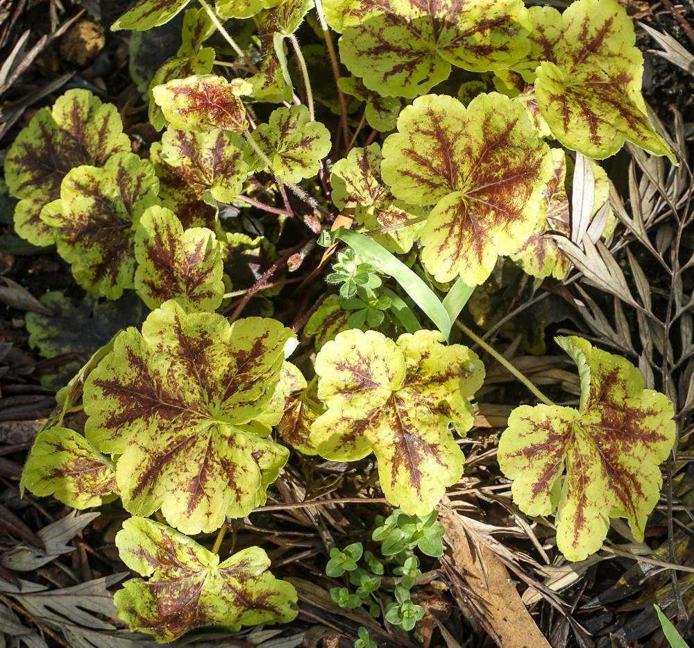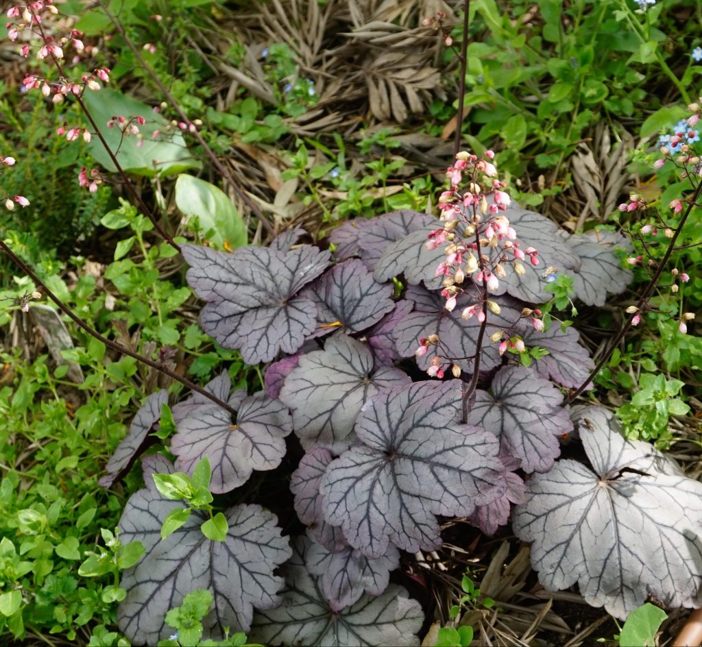 We bought other ferns and the environment (dappled shade) was ideal. We had never been a “fernery” type of gardener since probably the 80″s but it seems just like it was always there. You turn the corner of the Secret garden and there is is – through an “arch” created by the banksia trees. On the ground we planted Heucheras of many colors, succulents and tiny ferns that grew quickly and spread. Even an orchid!