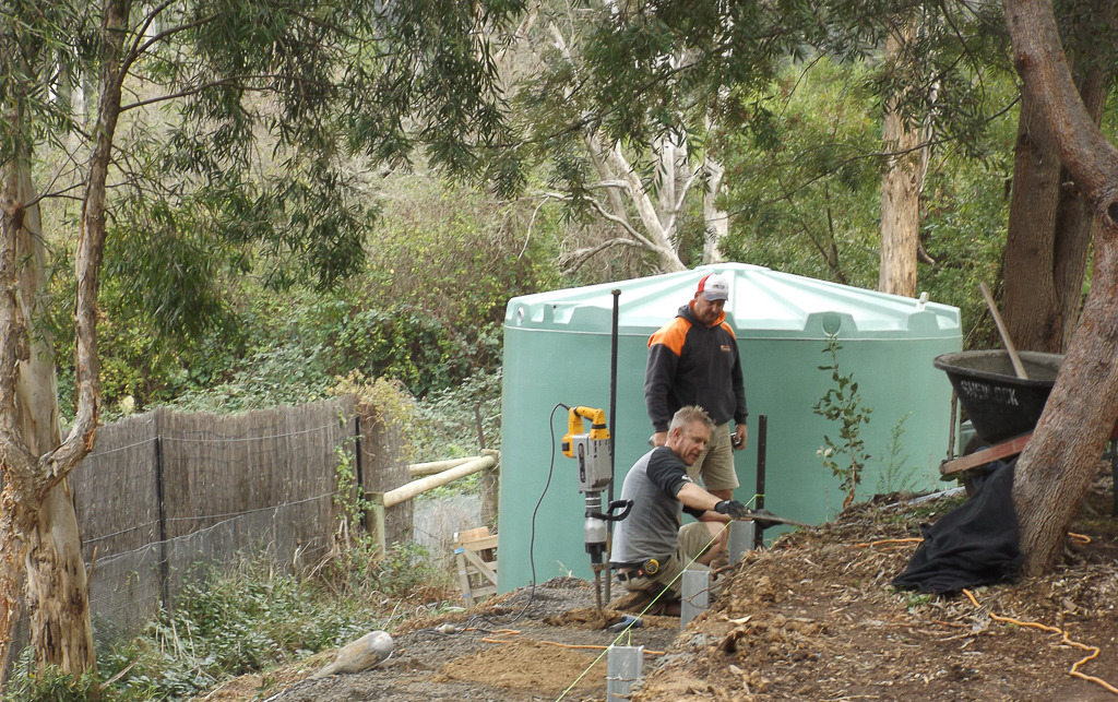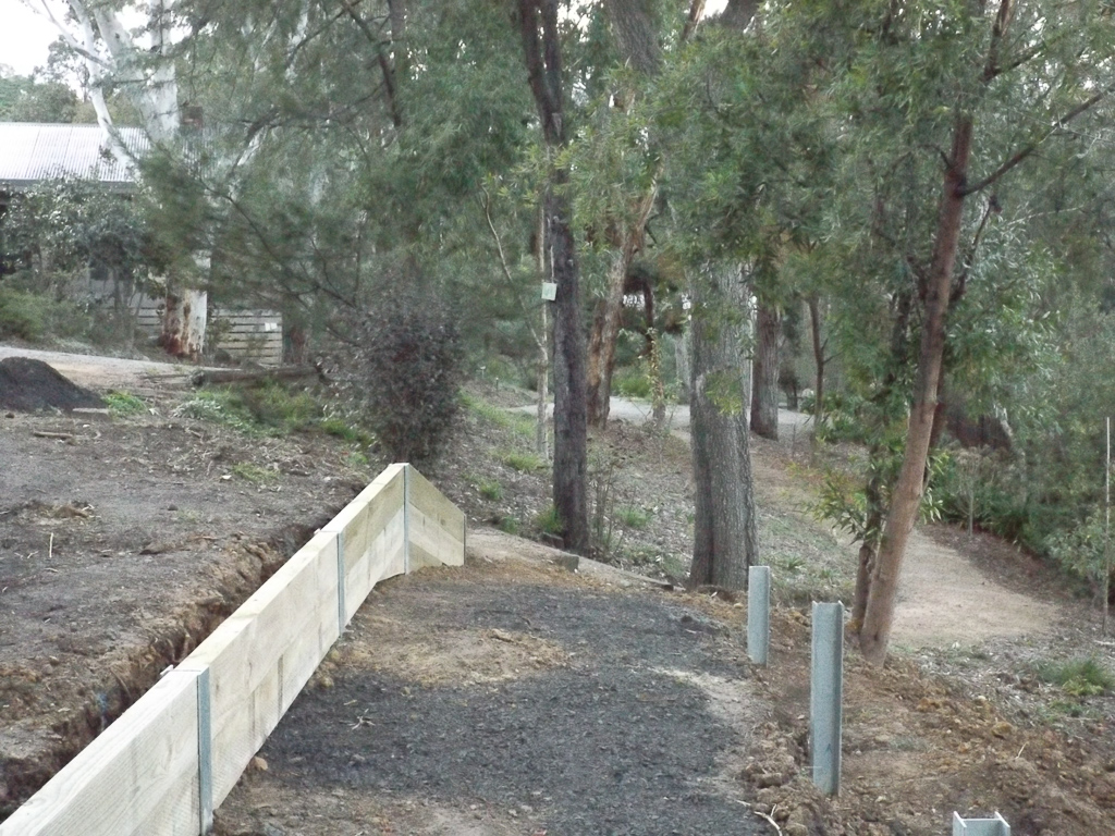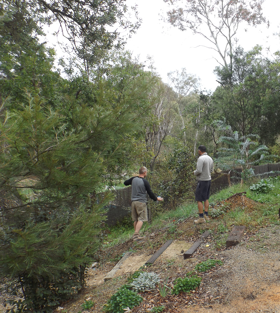 Building the path and the retaining wall was a big job – there was drainage to consider and we wanted to keep some of the banksia trees as the birds loved them (mainly the nuts to crunch on). Adam from Three Colors Green worked out a plan on the fly with levels – it was a busy day!