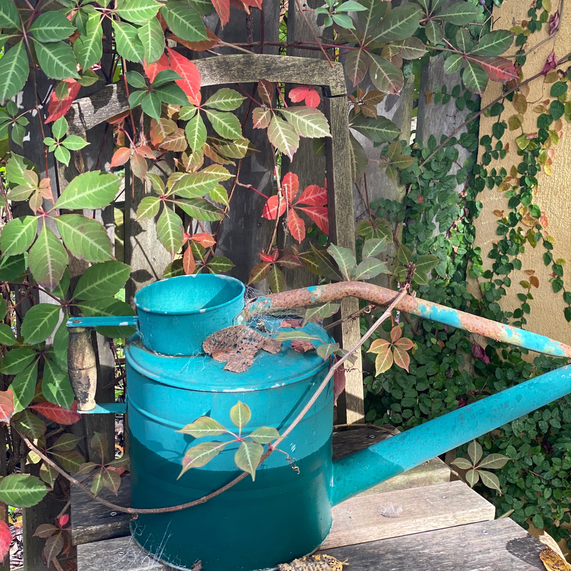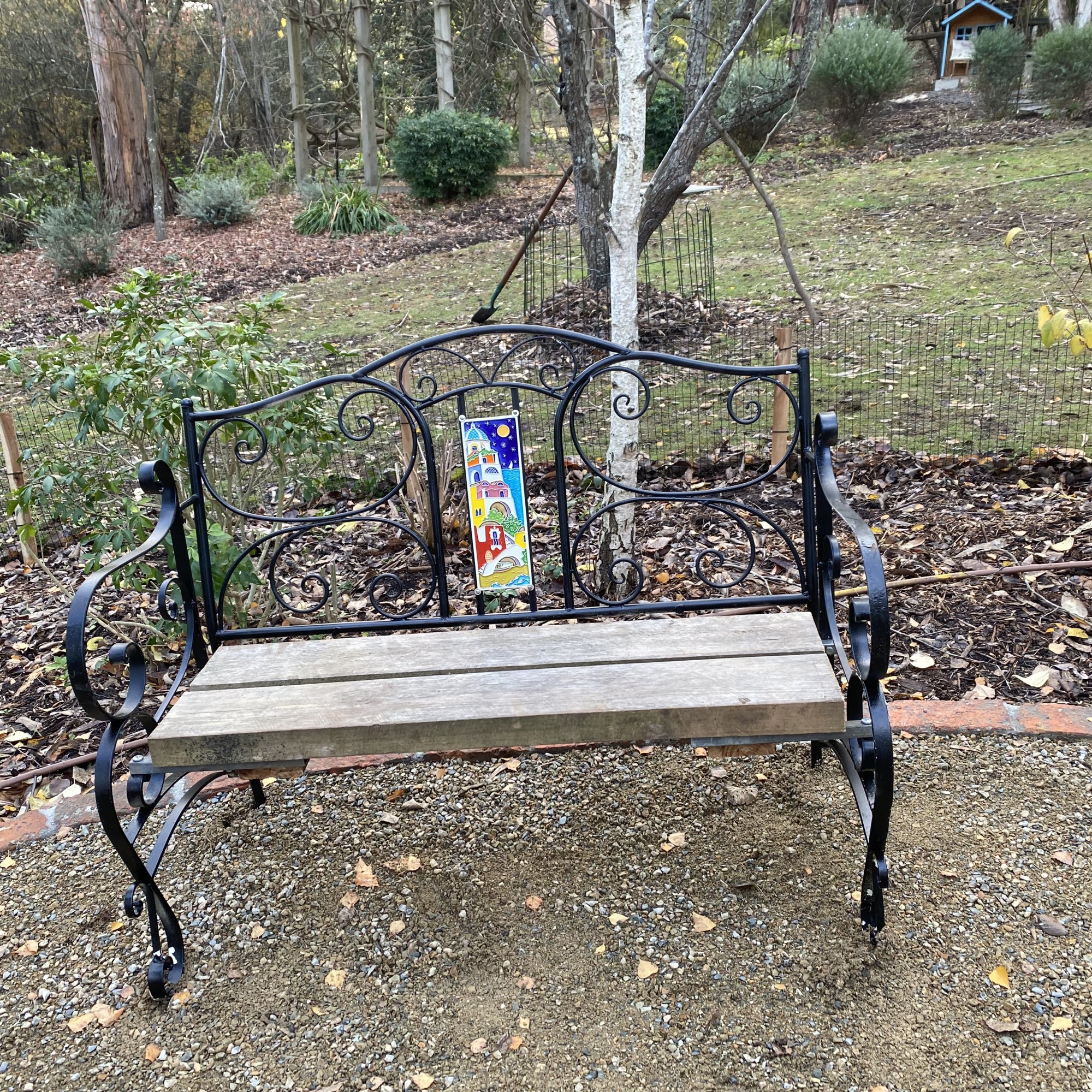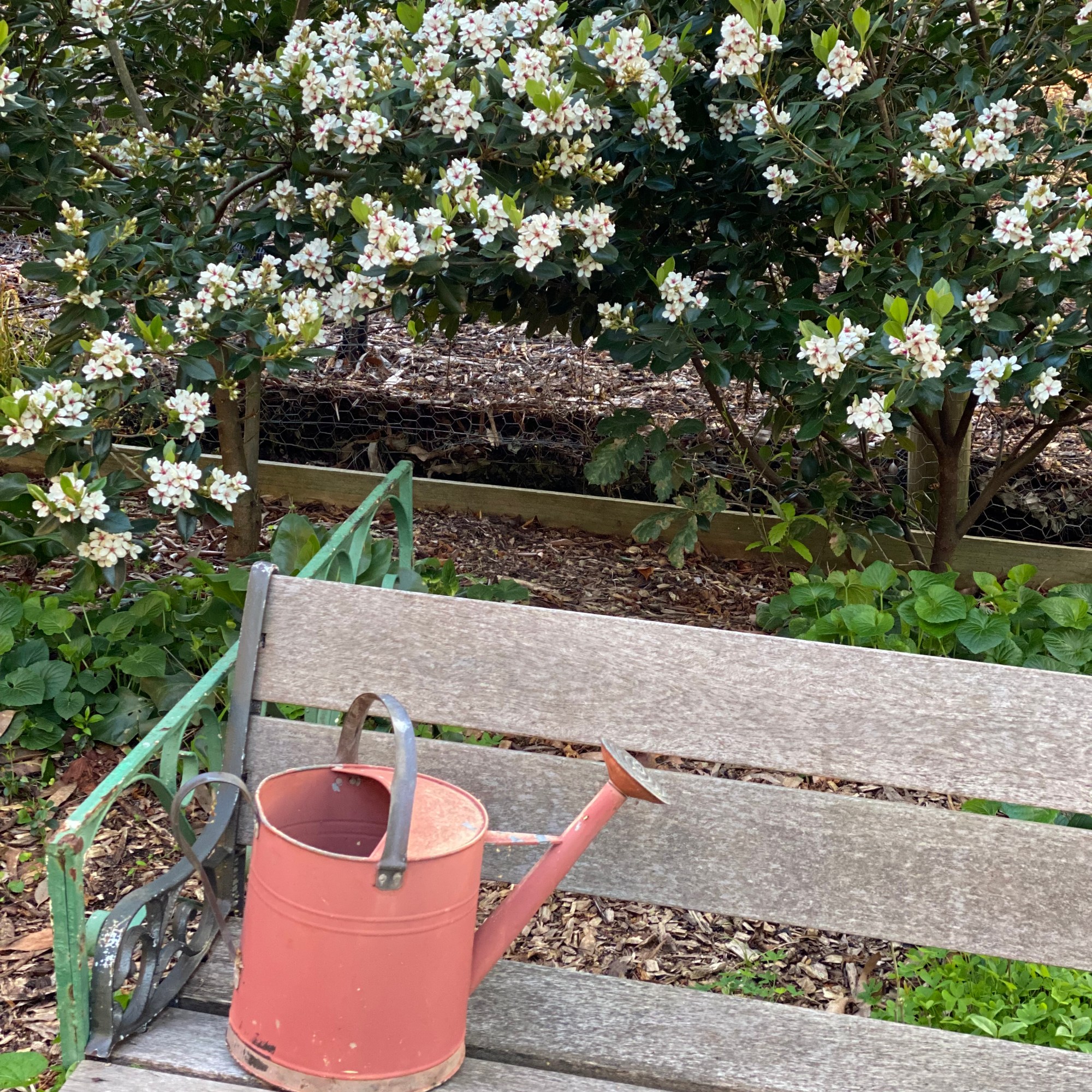 In the garden there are bird houses, baths, a giant apple, emu, concrete koala and angel – and mushrooms like Edna used to make… Seating is always close by – and helps to make sure everyone is well rested while walking around. Even the old cart holds branches and logs!