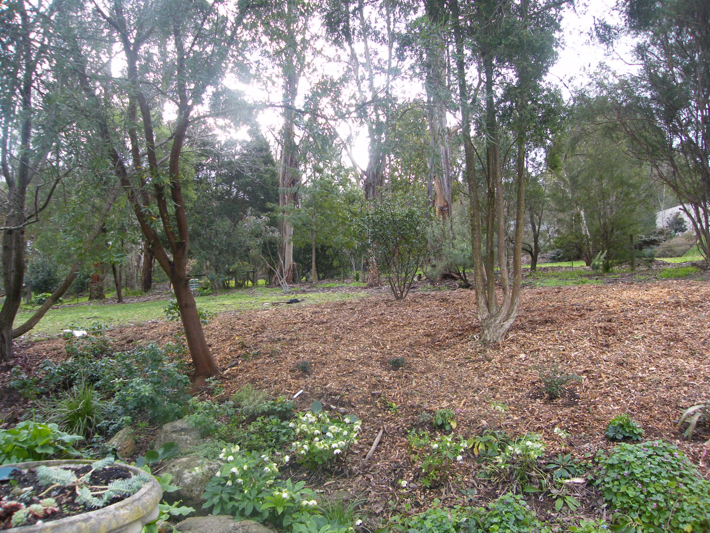 By joining the Australian Native Plant Group it is possible to get valuable advice – and everyone is keen to pass on their experience. There is already a garden area past the edibles and through the gate that is the current “Native Patch” – wattle to the right and then Correa and native plants mixed in with some Sedum “Summer Joy” and Viburnum snowball trees. It has been a while in the making – firstly we cleared the scrubby trees and weeds, put down some soil and compost then mulched and just let everything settle for a year or so. There were rocks and established trees – but very shady and for ages we would stand and look at this and wonder what to do.