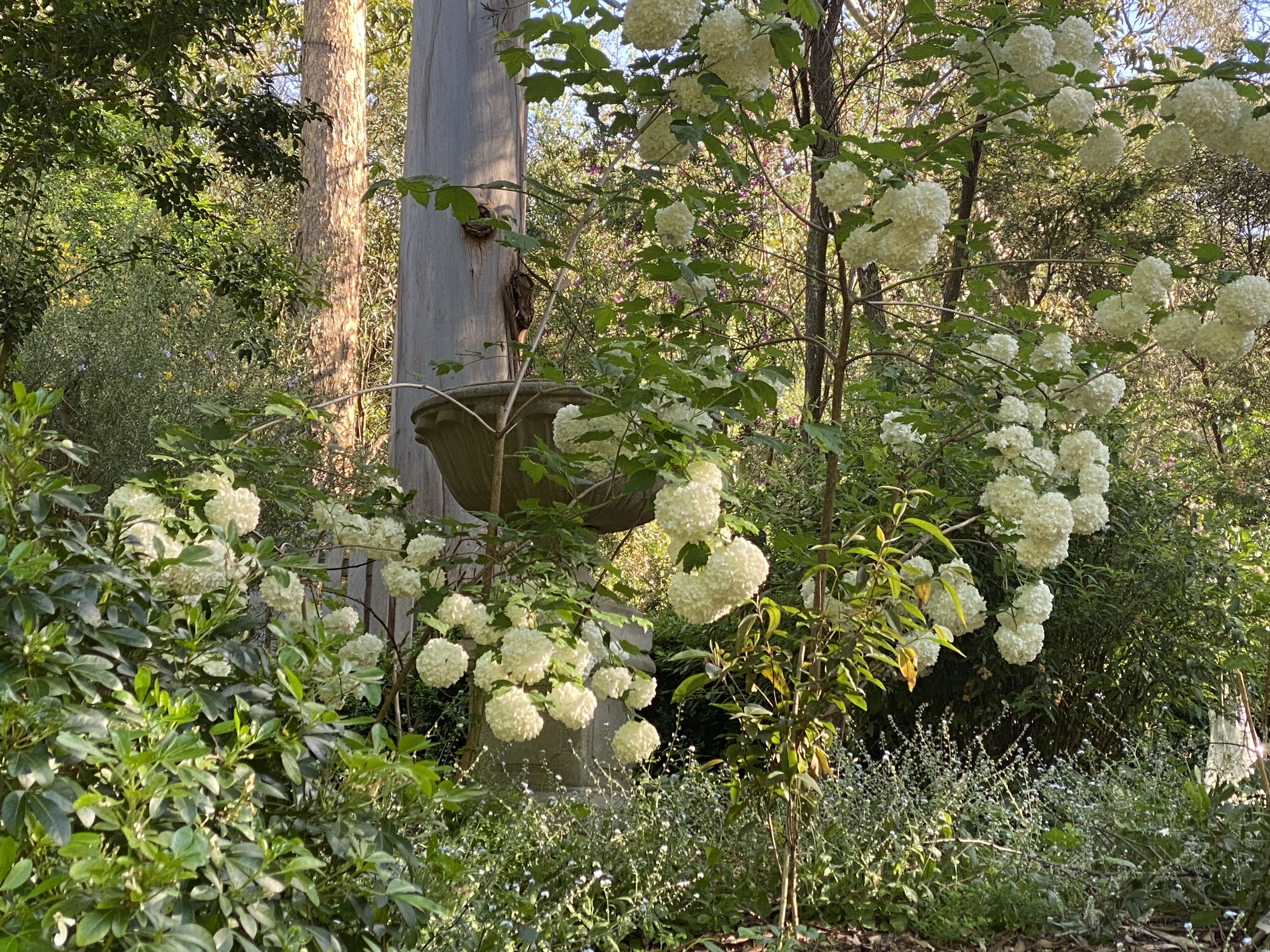 Also a Bird House and a large “formal” urn, some Westringa “balls”, Bottle Brush, Mint Bushes, Wattles and a Ginko! I know it sounds a bit hotch potch – but we figured when you don’t know what to plant – then go for things you like!