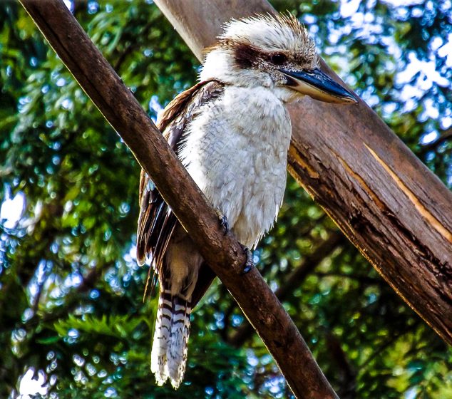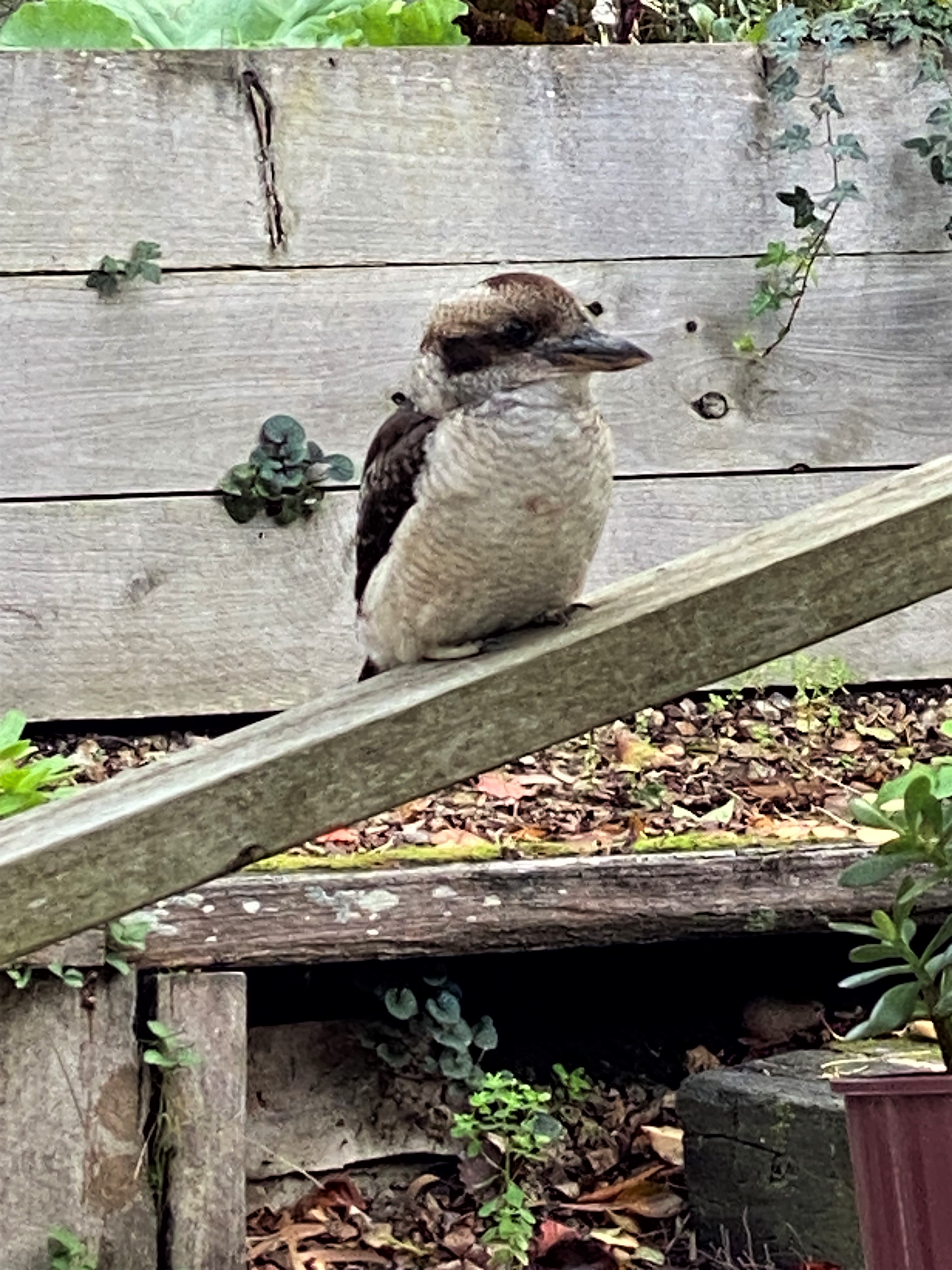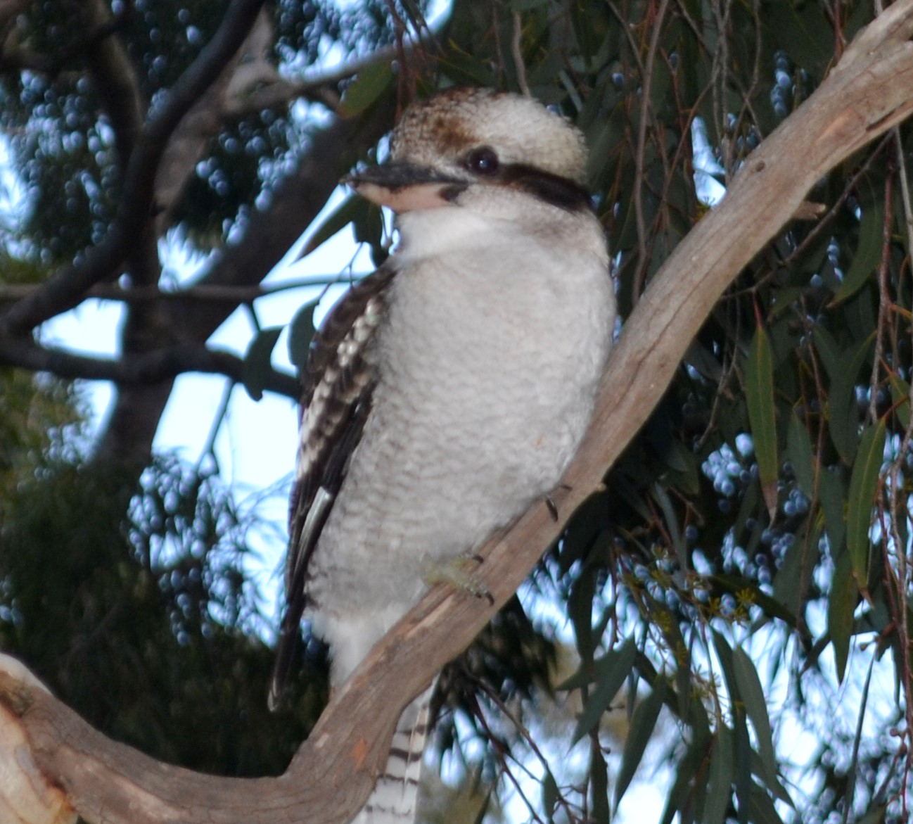 The Kookaburras are always here – they laugh and laugh at all times of the day and night. They happily sit beside you in the garden – ever ready for a worm or whatever. One of my favorites is the “sleeping Kooka” – probably because he was awake at 4.00am in the morning – laughing and needs to catch up at during the day. They have a very keen eyesight and are hunters. A rat came to a sticky end in the beak of a junior Kookaburra!