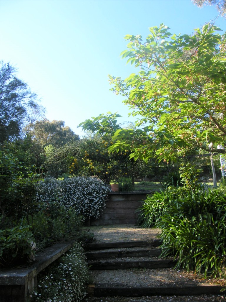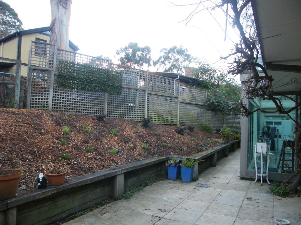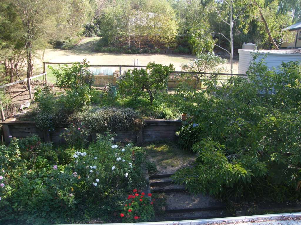 Bonnie Dog is checking on the Bank BEFORE we clear itThis is the bank near the chook pen – it just had to be cleared of all the junkBank is cleared and cautious planning commencedVery first picture in 2012 – up the back sort of where the Birch Forest is.Before the Chooks and the raised garden beds there was a Seaside Daisy wall of flowers up some very dodgy stepsWhere the raised garden beds are now and the chook pen – taken from the roofRaised Garden beds getting builtBefore the wisteria colonnade – just a very old wisteria…From the native patch across to the raised garden beds – wattles have been plantedClearing getting ready for the birch forestMarking trees to be moved for the birch forestBefore the Secret GardenBefore the OrchardBefore the perennial gardenBefore Rosa di Pagola – a cricket pitchBefore the wattle tree fell over