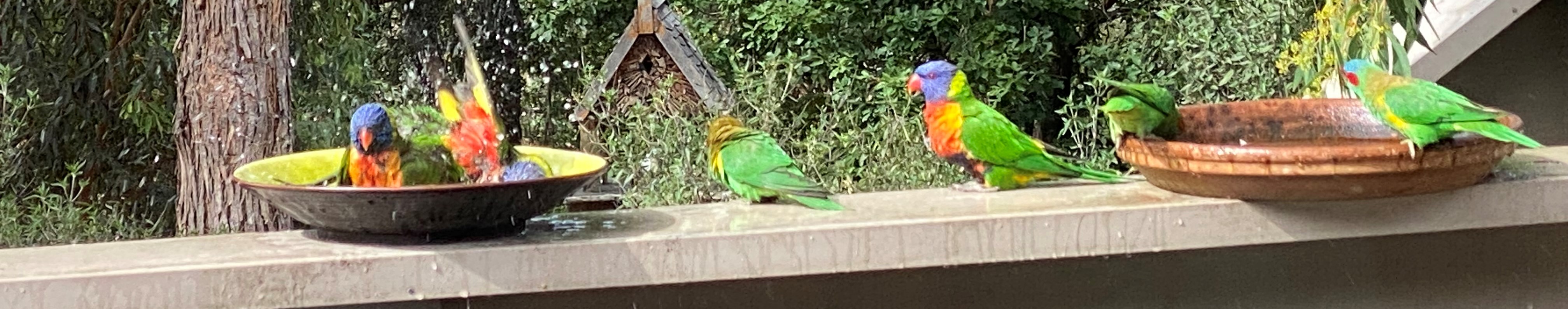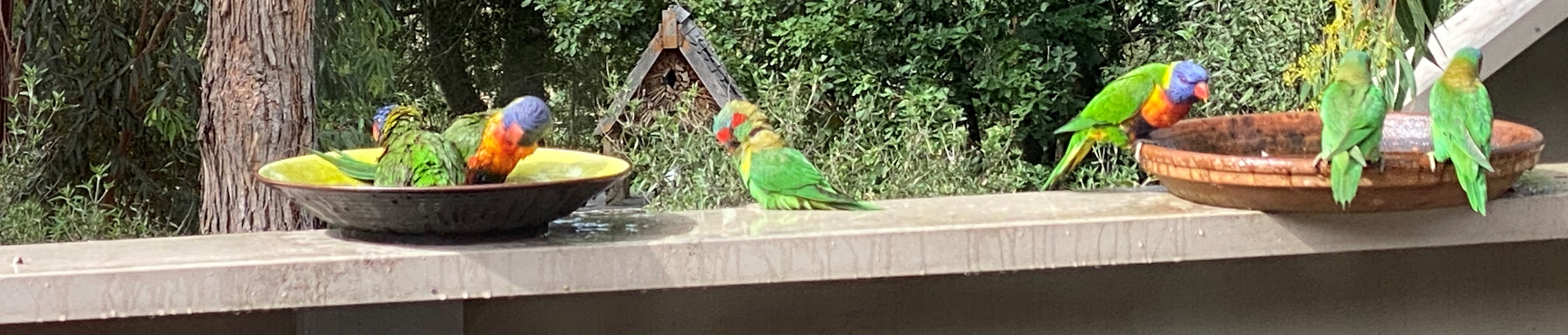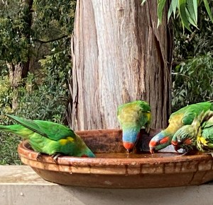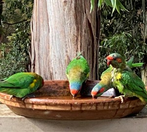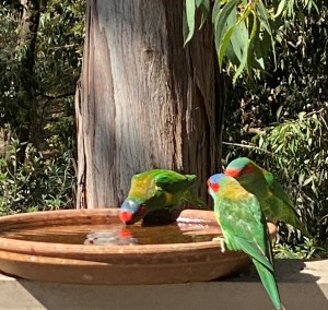 They are acrobatic and mix well with the other birds mainly the Rainbow Lorikeets – but they like to all gather and drink together.