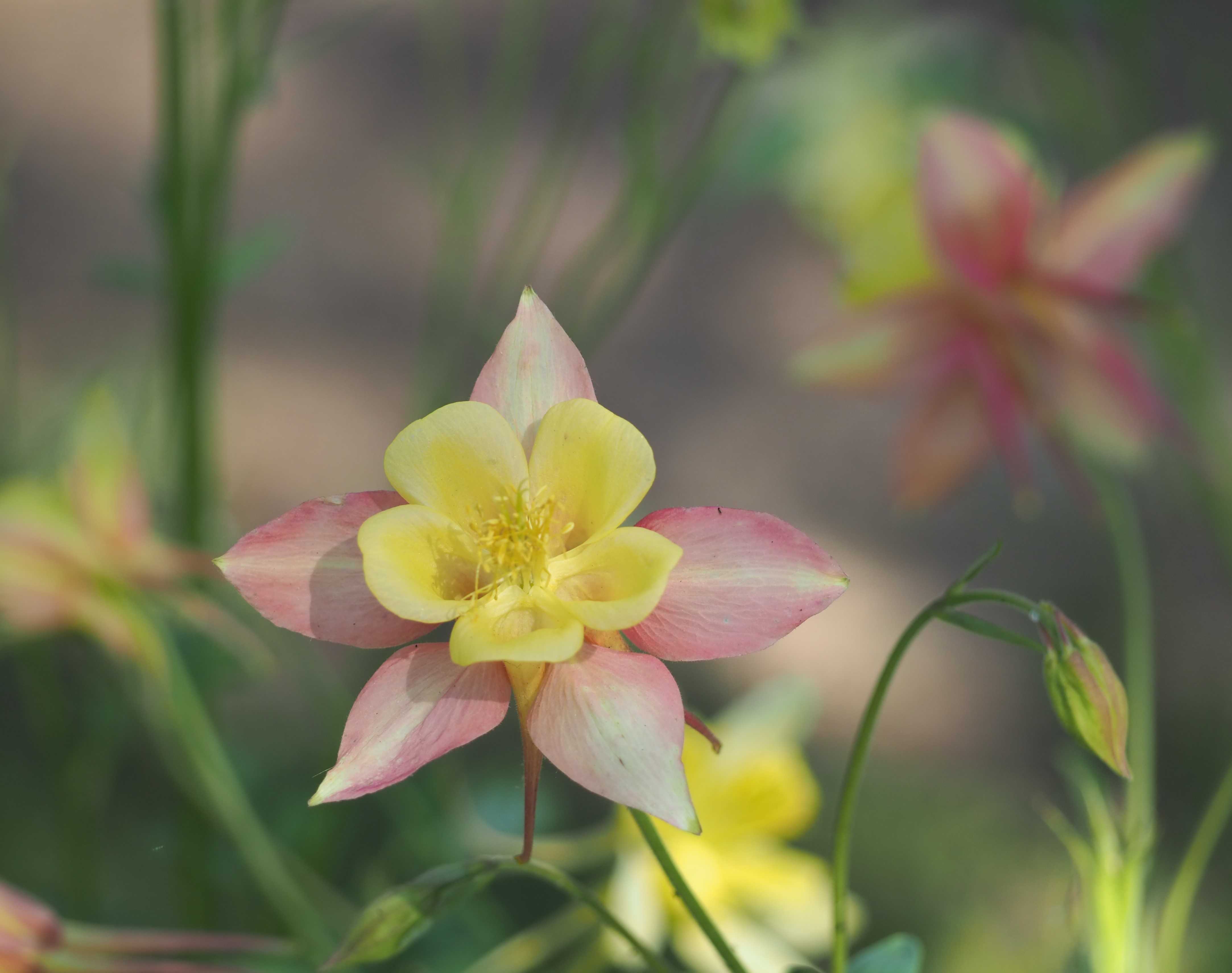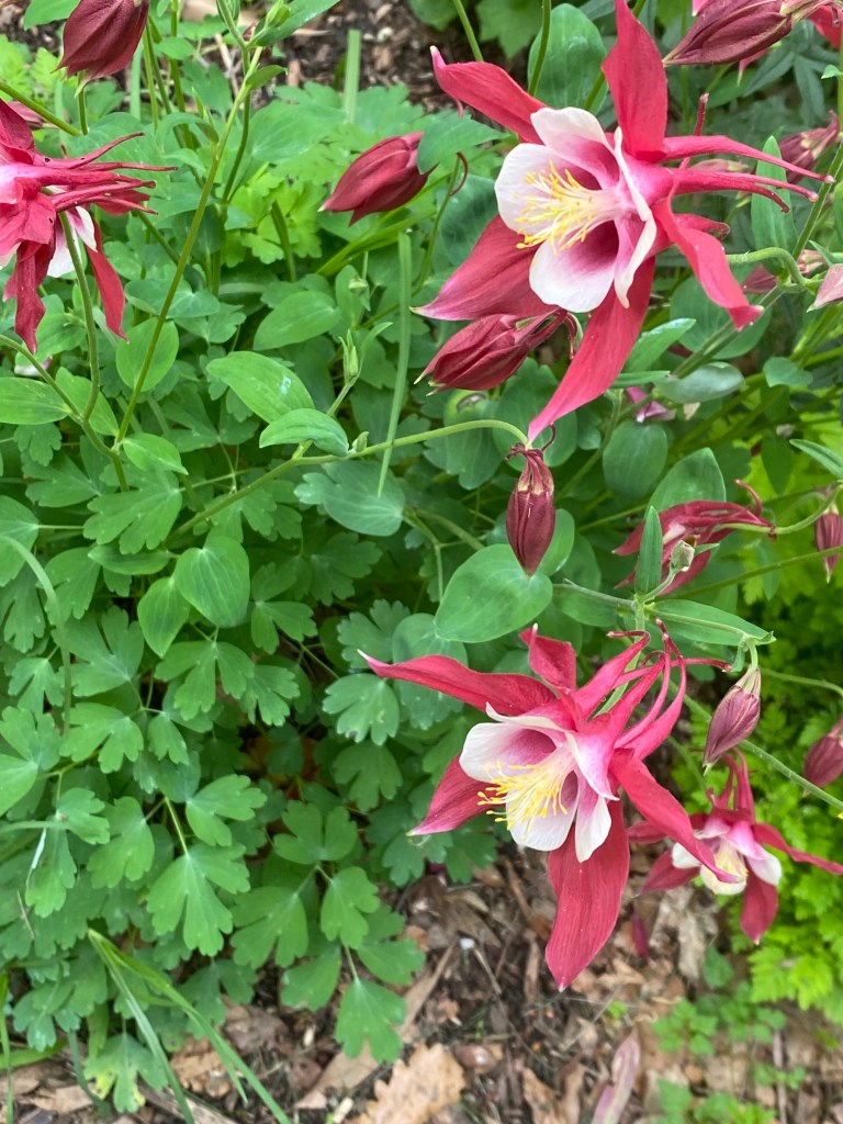 Aquilegia vulgaris is a species of columbine native to Europe with common names that include: European columbine, common columbine, granny’s nightcap, and granny’s bonnet. It is a flowering herbaceous perennial plant growing to 1.2 m tall, with branched, thinly hairy stems.