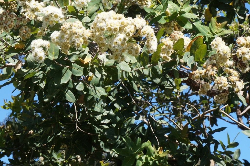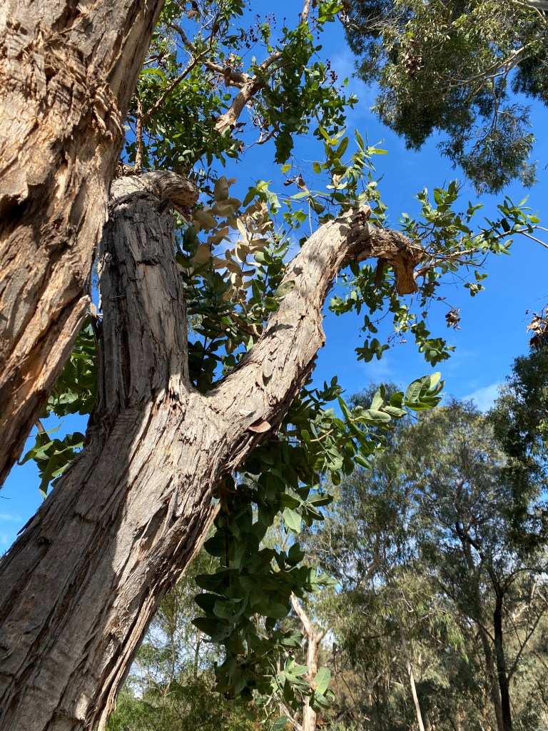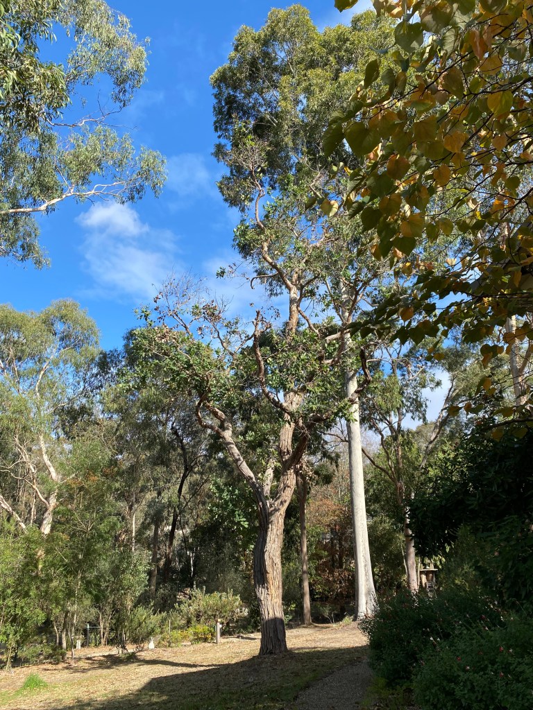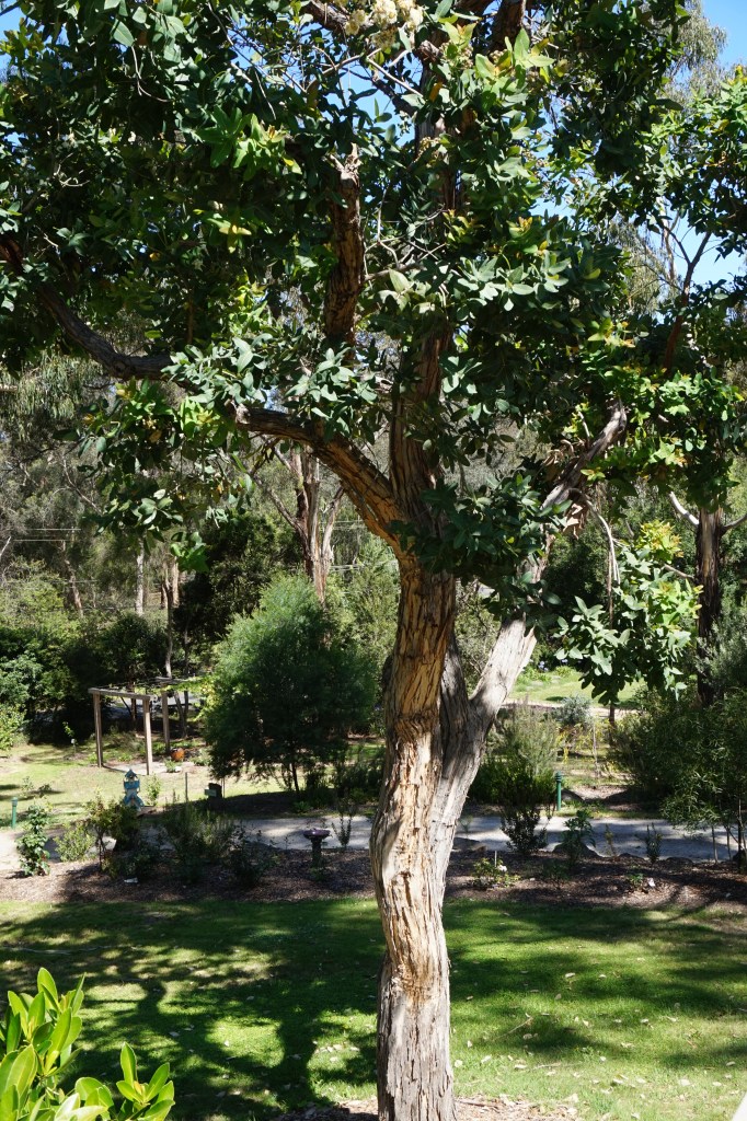 Angophora subvelutina, also known as the Broad-leaved Apple, is a native Australian tree belonging to the Myrtaceae family. It is a medium-sized tree, typically reaching heights of 17-25 meters, with a fibrous or flaky greyish bark. It really is the most interesting tree – looks a bit like it should be in “Lord of the Rings”