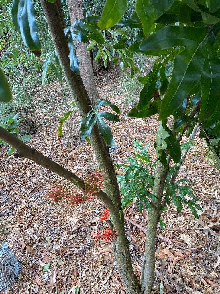 Stenocarpus sinuatus, known as the firewheel tree, is an Australian rainforest tree in the family Proteaceae. The range of natural distribution is in various rainforest types from the Nambucca River in New South Wales to the Atherton Tableland in tropical Queensland. It is slow growing and after 12 years since we planted it at Uccello Lane we were stunned to see these amazing “color wheels” start emerging from the trunk – first time!