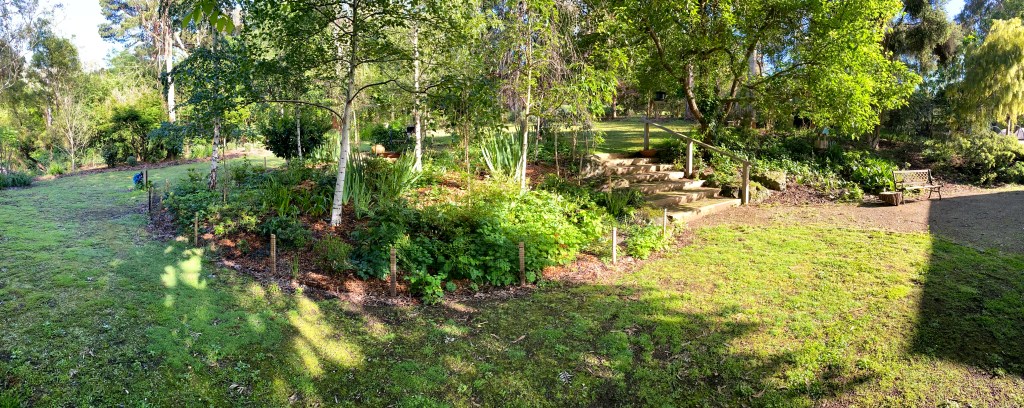 So we put the fence up and decided to mass plant Birches – keep viburnum in the middle storey and the azalea at the bottom (See Below). The idea was with 21 birches all of different sizes you could walk in at the top open the new gate – and sit on the seat and be hidden from view.
