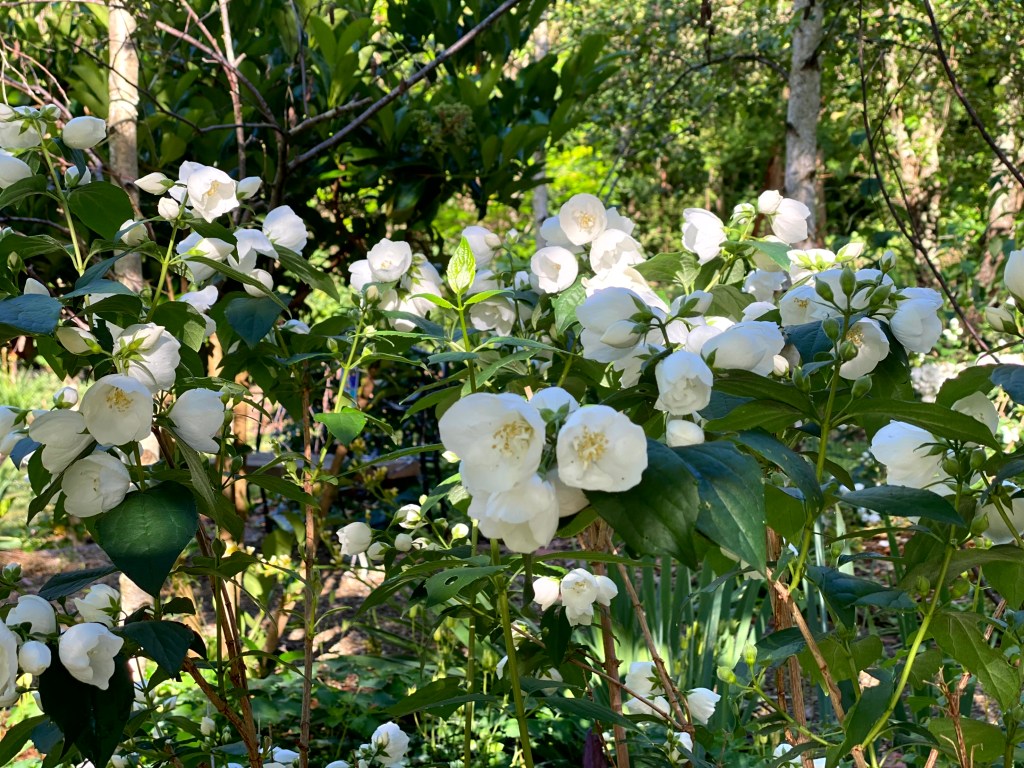 We decided that a rabbit proof fence had to be put around the Birch Forest as last year they demolished the Granny’s Bonnets in 1 sitting. See below the “before” picture.