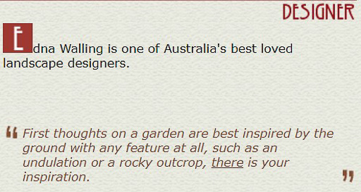 Most importantly the garden had to be an extension of the mudbrick houses where floor length windows everywhere meant the garden was always visible and to be enjoyed. We also included as many elements as Edna described – we even tried to make our own mushrooms like she did – ours were just a bit too rustic! Edna Walling has a unique place in Australian Gardening History. She was one of Australia’s most influential landscape designers. She began gardening when it was a “men only” career and had to work hard to overcome the prejudice of the time.